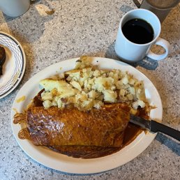 On the way for a fund day of fishing and decided to stop in for breakfast. This little quaint breakfast spot was busy but we found a spot to sit. We ordered the huevos rancheros. I loved that they had it in blue corn tortillas. The potato's we a little crispy and but soft as well. We also ordered the breakfast burrito. The red Chile was full of flavor, not spicy at all, but I did not mind as it had amazing flavor to go with the dish. The green chile however had a kick to it, but did not overwhelm the dish. The prices were reasonable for the portions of food you get. This is a definite must go to spot if you visit Santa Fe.